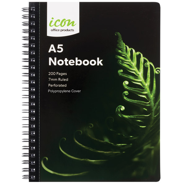 ICON SPIRAL NOTEBOOK A5 POLYPROP COVER BLACK 200 PAGE