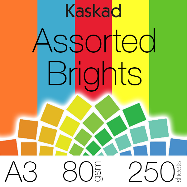 KASKAD COLOURED PAPER A3 80GSM ASSORTED BRIGHTS PACK 250