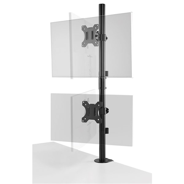 Dual Vertical Mounting holds computer screens in a stacked position for top and bottom browsing and gaming.