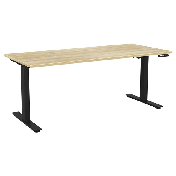 KNIGHT AGILE ELECTRIC DESK W1800 X D700 X H680-1130MM BLACK FRAME ATLANTIC OAK TOP