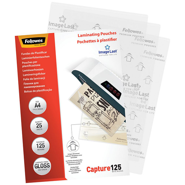 LAMINATING POUCH FELLOWES A4 125MIC PACK 100