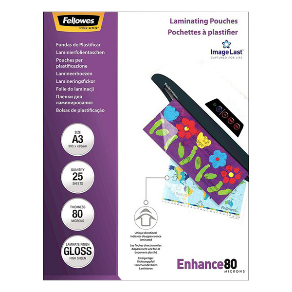 FELLOWES LAMINATING POUCH A3 80 MICRON BOX 100