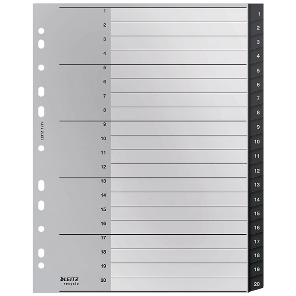 LEITZ RECYCLED POLYPROPYLENE INDICES 1-20 TAB A4 BLACK