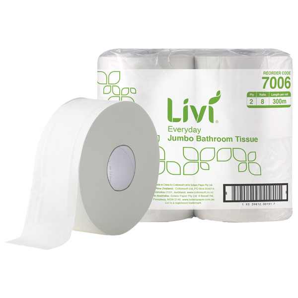 LIVI EVERYDAY 7006 JUMBO ROLL TOILET 2 PLY 300M CARTON 8