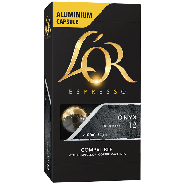 L'OR Onyx is a hymn to the ultimate essence of pure espresso: noble, black and racy, Its roasting and fine grinding reveal a typically spicy mixture, highlighted by a supreme note of bitter cocoa which reveals the most powerful character of the espresso