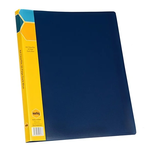 MARBIG DISPLAY BOOK A4 20 PAGE INSERT SPINE DARK BLUE