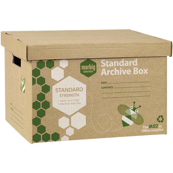 MARBIG ENVIRO ARCHIVE BOX WITH LID W400 X H305 X D260MM BROWN