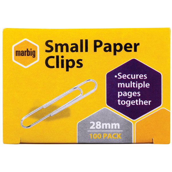 MARBIG PAPER CLIP SMALL 28MM BOX 100