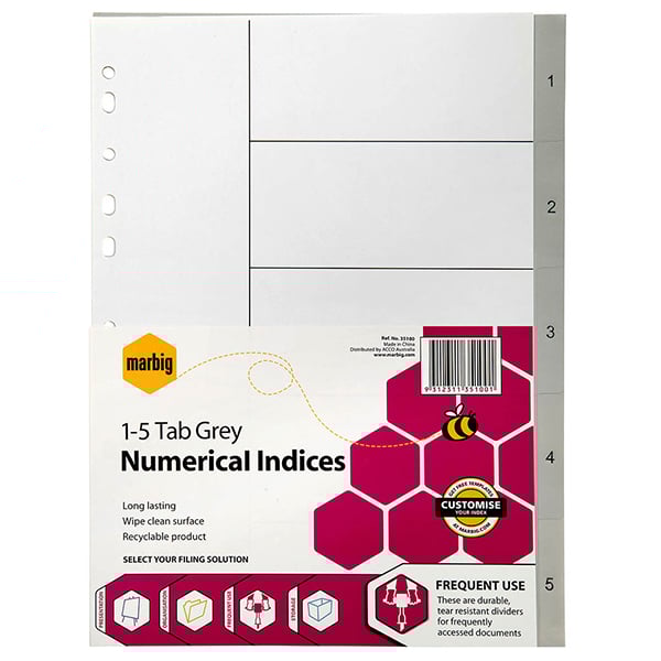 MARBIG PP INDEX DIVIDER 1-5 TAB A4 GREY