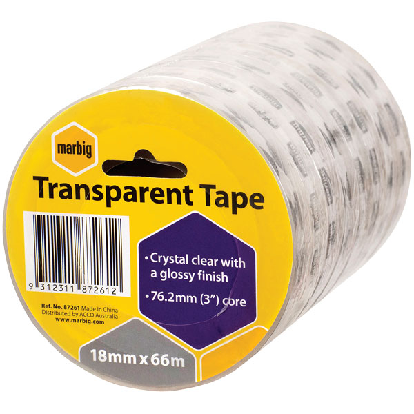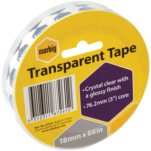 MARBIG TRANSPARENT TAPE 18MM X 66M 76.2MM CORE