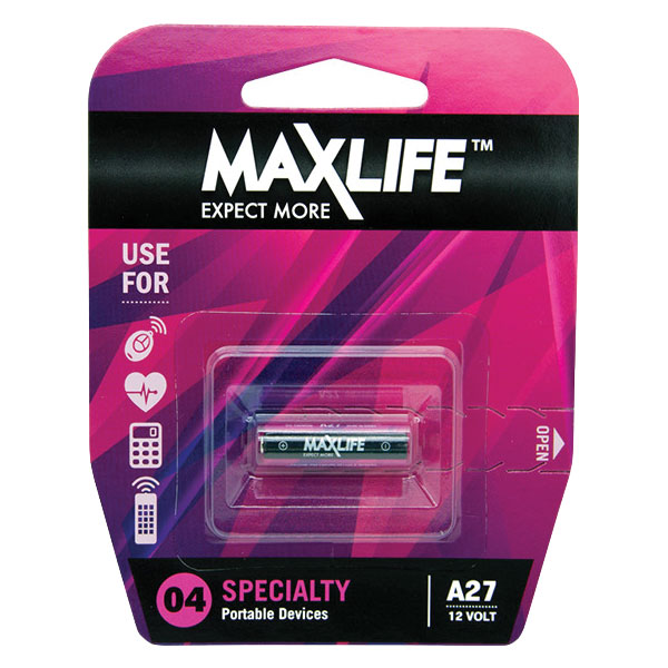MAXLIFE BATTERY ALKALINE A27 12 VOLT