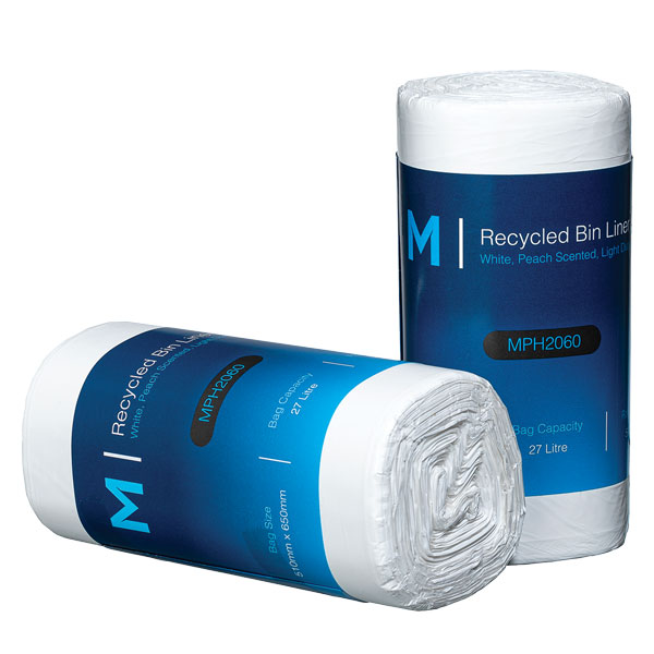 MPH RECYCLED BIN LINERS WHITE 27L ROLL 50