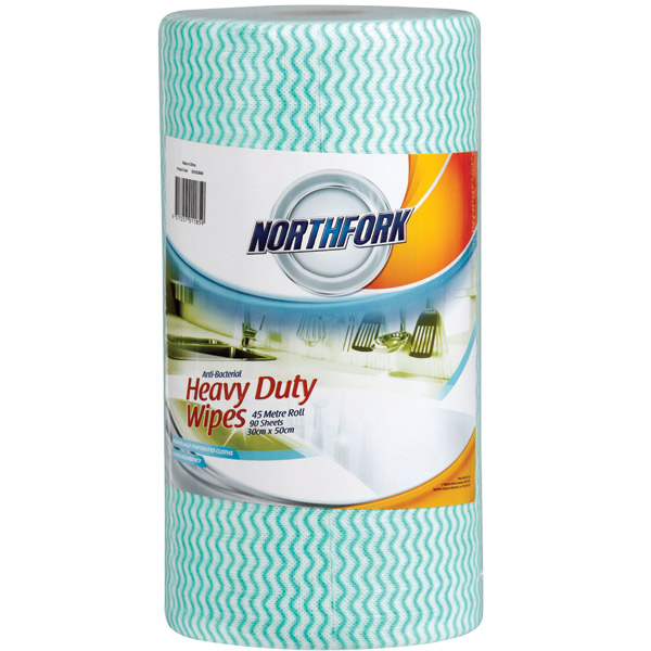 NORTHFORK HEAVY DUTY ANTIBACTERIAL PERFORATED WIPES 45M ROLL GREEN PACK 90 SHEETS