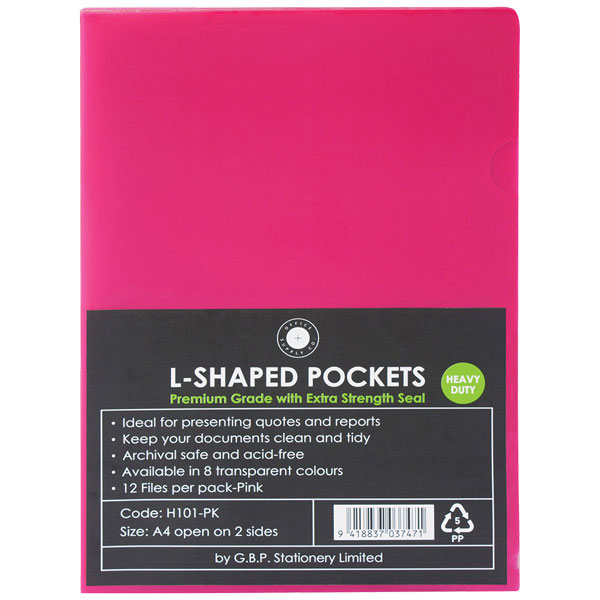 OFFICE SUPPLY CO L-SHAPED POCKET A4 PINK PACK 12