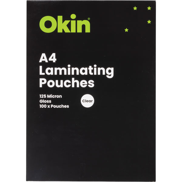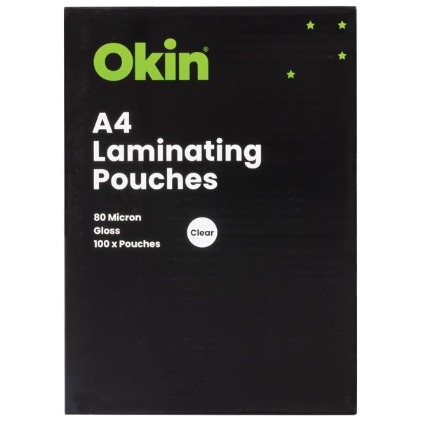 OKIN LAMINATING POUCH A4 80 MICRON GLOSS BOX 100