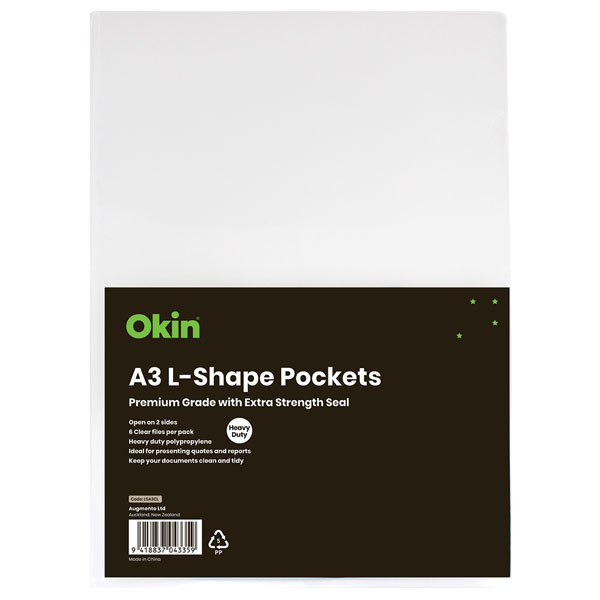 OKIN L-SHAPED POCKET A3 CLEAR PACK 6