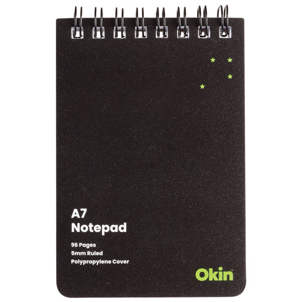 OKIN SPIRAL NOTEPAD A7 POLYPROP COVER BLACK 96 PAGE