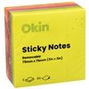 OKIN STICKY NOTES 75MM X 75MM NEON 5 PACK