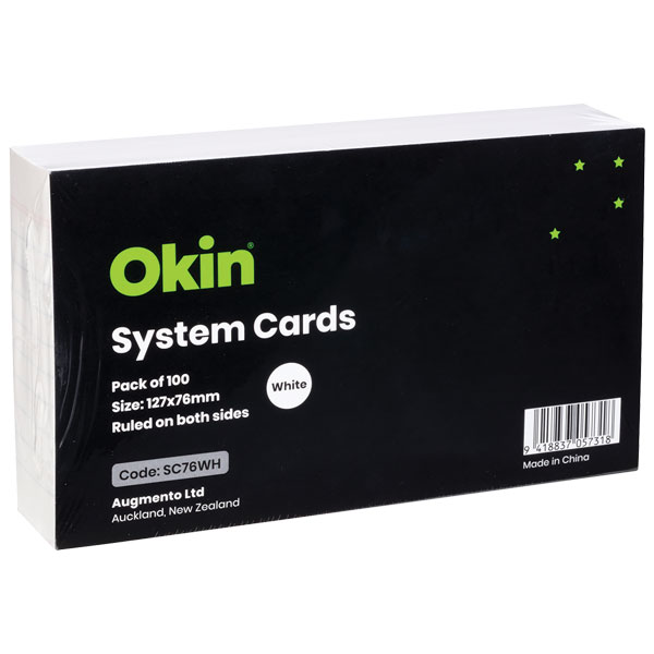 OKIN SYSTEM CARDS 76 X 127MM WHITE PACK 100