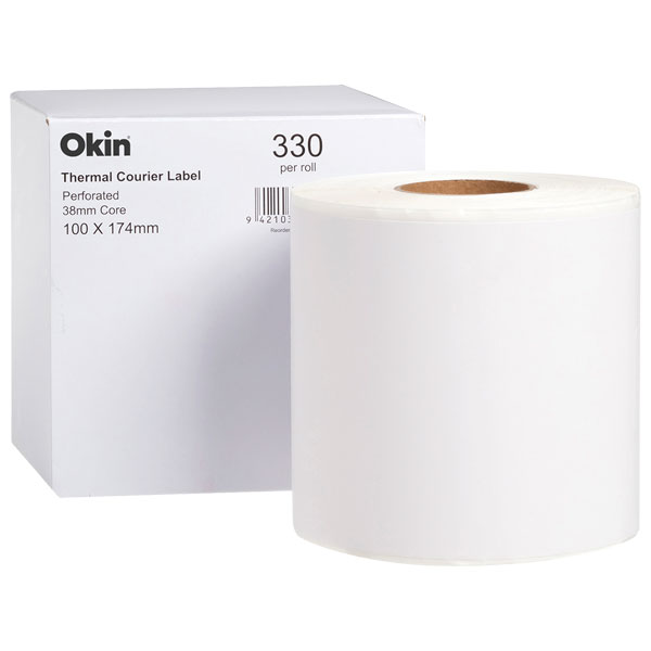OKIN THERMAL COURIER LABEL PERFORATED 100X174MM 330 LABELS