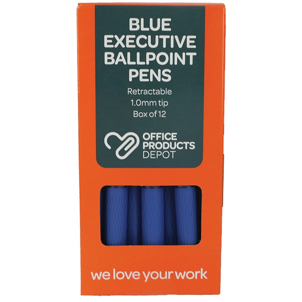 OPD Blue Retractable Ballpoint Pens have 1.0mm tips and metal points.