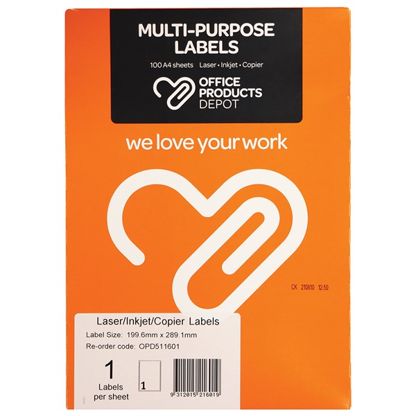 Office Products Depot laser labels format your labels easily - compatible with standard software e.g. WordDesigned to give optimum performance when used in most popular brands of photocopiers, laser and inkjet printers.