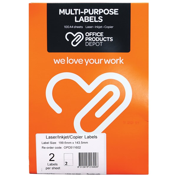 Office Products Depot multi-purpose labels offer you a cost effective, software-supported solution for your labelling needs. Use Office Products Depot labels in your laser printer, inkjet printer or copier. Select from a full range of mailing and parcel label sizes