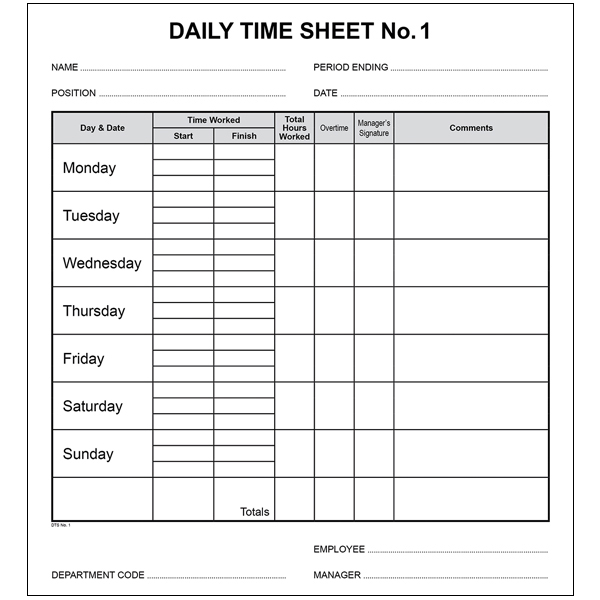 OPUS DAILY TIMESHEET NOTE PAD NO. 1 W200 X L220MM 50 LEAF