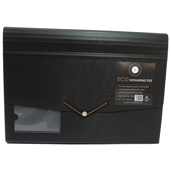 OSC ECO EXPANDING FILE A4 12 POCKET BLACK