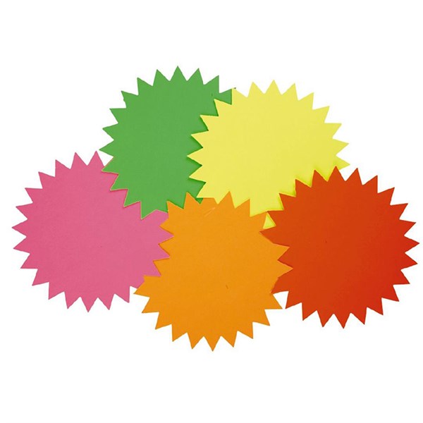 POINT OF SALE CARD STAR LARGE 203MM ASSORTED COLOURS PACK 20