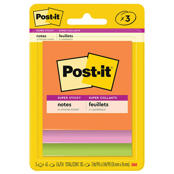 POST-IT 3321 SUPER STICKY ULTRA ASSORTED COLOURS PACK 3