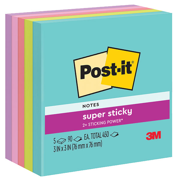 Post-it Super Sticky Notes in 76mm x 76mm size feature 2X the sticking power.