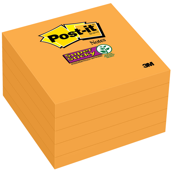 POST-IT 654-5SSNO SUPER STICKY NOTES 76 X 76MM NEON ORANGE PACK 5