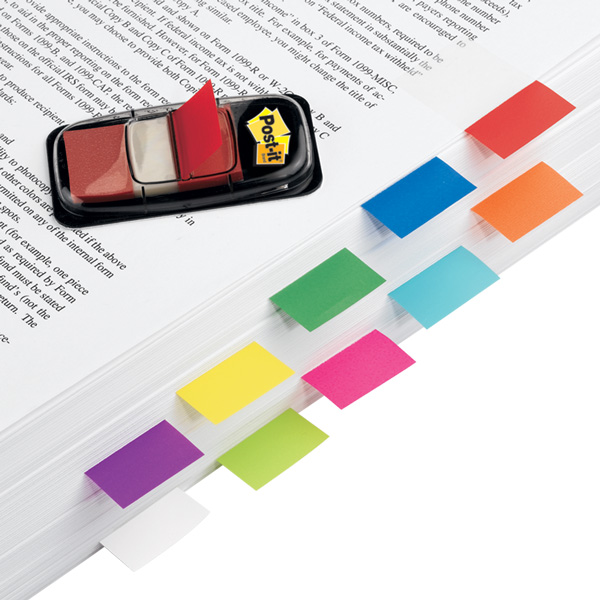 Post-it Flags in 25mm wide size can be written on to keep track of notes and documents for reference later.