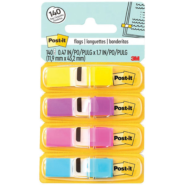 POST-IT 683-4 MINI INDEX FLAGS PRIMARY ASSORTED PACK 140