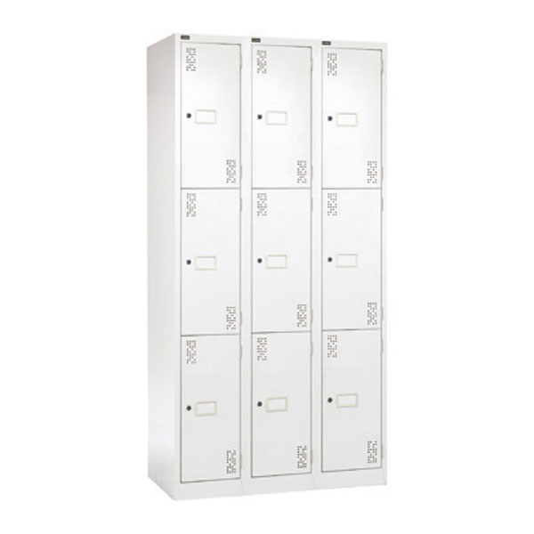 PRECISION CLASSIC LOCKER 3 TIER BANK OF 3 W900 X D457 X H1800MM WHITE SATIN