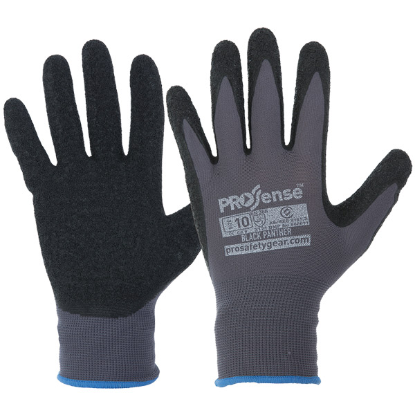 PROSENSE BLACK PANTHER LN SAFETY GLOVES LATEX PALM ON NYLON LINER SIZE 10 PAIR BLACK