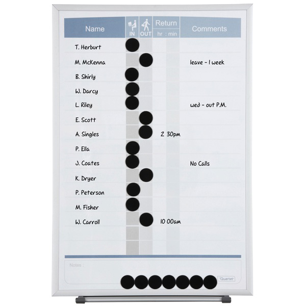 Keep track of your employees with the Quartet dry erase magnetic In/Out boards