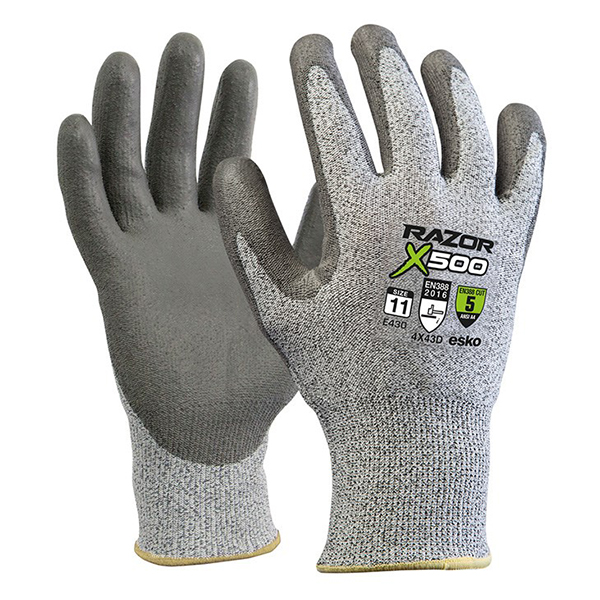 The Razor 500 glove has a high cut resistant HPPE spandex and polyester liner with a PU palm coating.