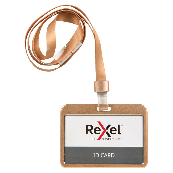 REXEL ID CARD HOLDER ALUMINIUM LANDSCAPE WITH LANYARD ROSE GOLD