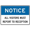 SAFETY SIGN W450 X H300MM ALL VISITORS MUST REPORT TO RECEPTION