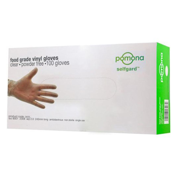 SELFGARD DISPOSABLE GLOVE VINYL POWDER FREE FOOD GRADE MEDIUM BOX 100