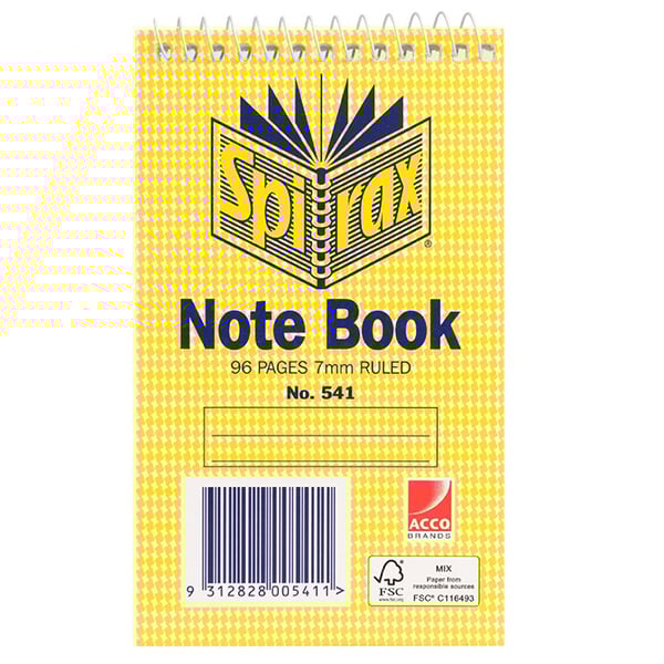 SPIRAX 541 REPORTERS NOTEBOOK SPIRAL BOUND TOP OPEN 96 PAGE 147 X 87MM