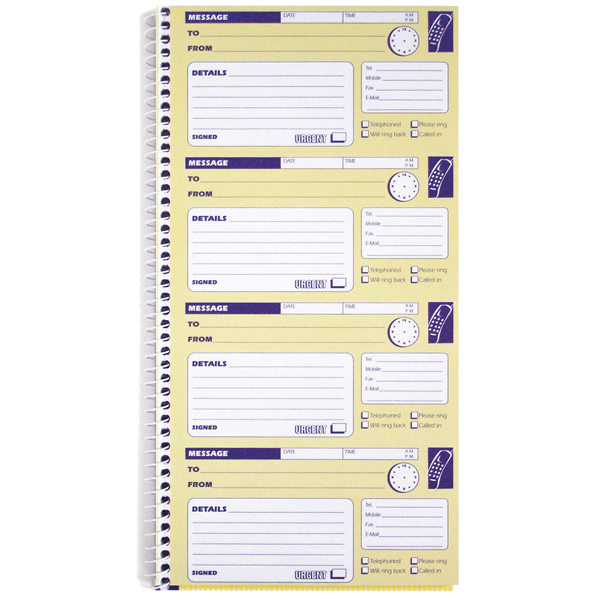 SPIRAX 550 TELEPHONE MESSAGE BOOK CARBONLESS 160 PAGE 279 X 144MM