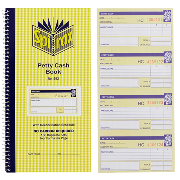 SPIRAX 552 PETTY CASH BOOK CARBONLESS 160 PAGE 279 X 144MM