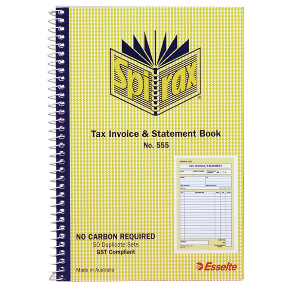SPIRAX 555 TAX INVOICE AND STATEMENT BOOK CARBONLESS 50 PAGE 207 X 144MM