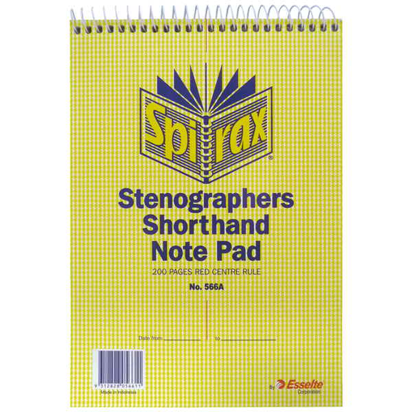 SPIRAX 566A STENOGRAPHER SHORTHAND NOTE PAD SPIRAL BOUND TOP OPEN 200 PAGE 225 X 152MM