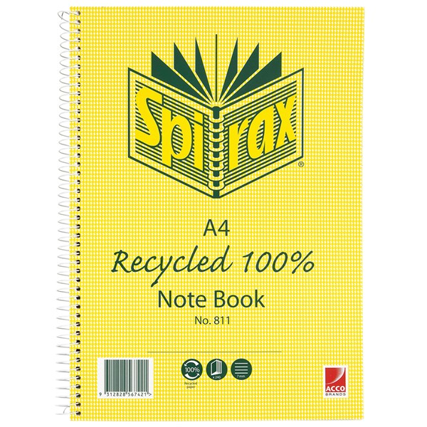 SPIRAX 811 NOTEBOOK 100% RECYCLED SPIRAL BOUND A4 240 PAGE