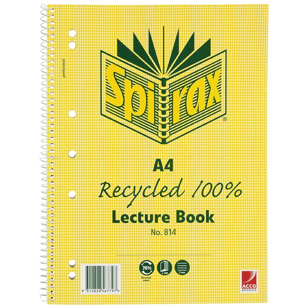 SPIRAX 814 LECTURE BOOK 7 HOLE PUNCHED 100% RECYCLED SPIRAL BOUND A4 140 PAGE
