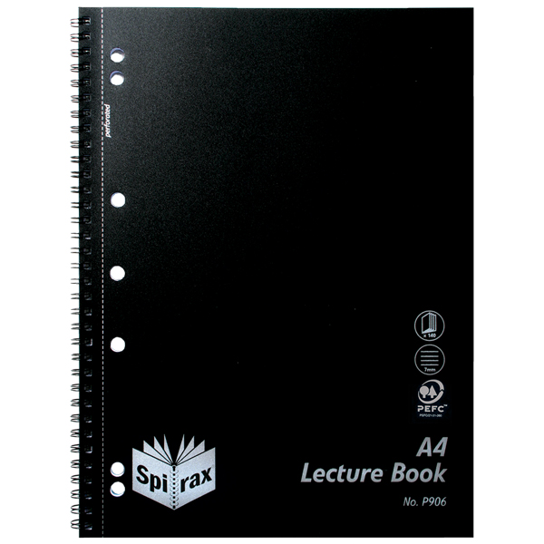 SPIRAX P906 LECTURE BOOK 7MM RULED 7 HOLE PUNCHED WIRO BOUND A4 BLACK